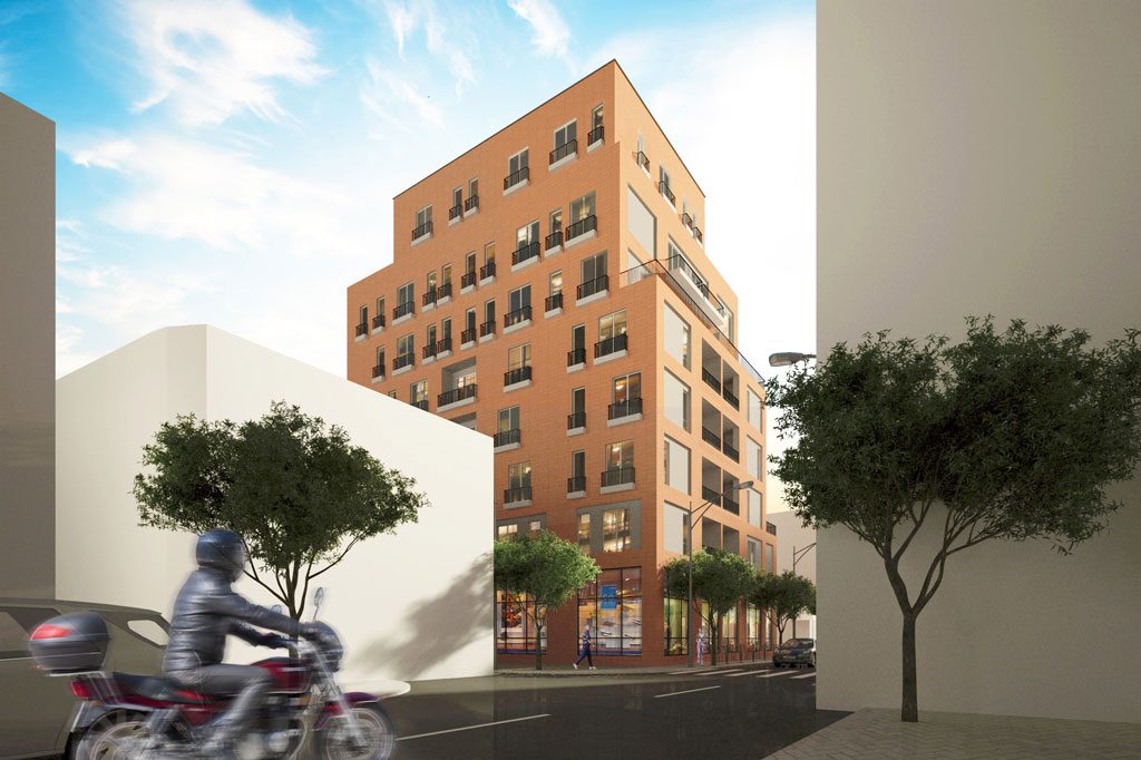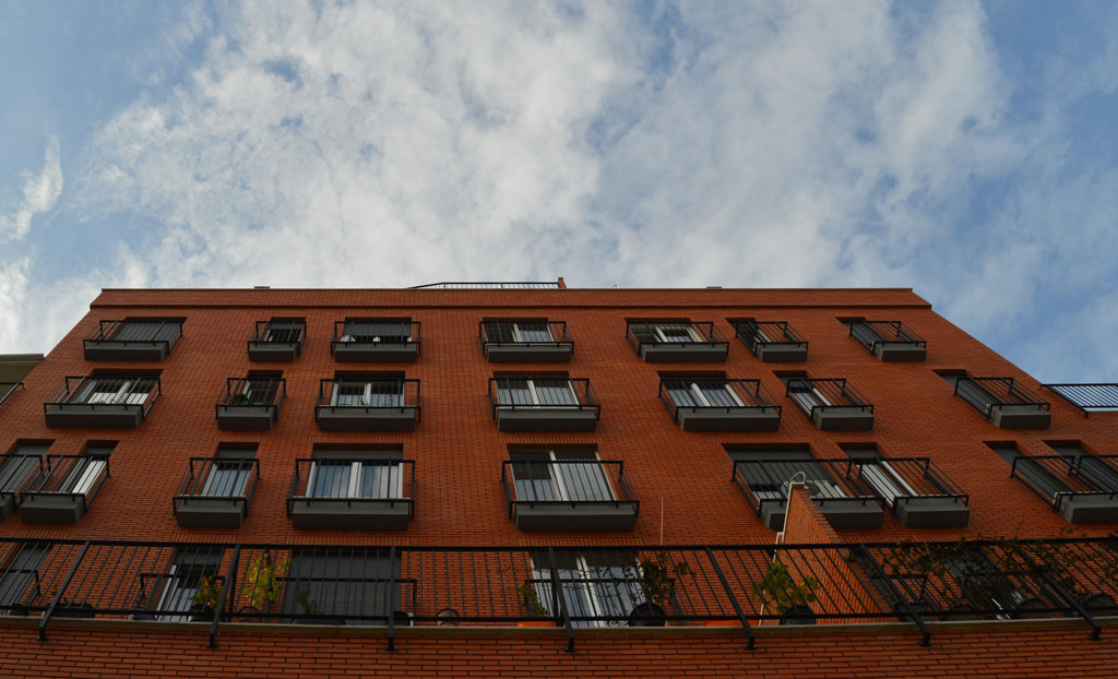 The planimetric solution of the residential floors is based on the placement of the apartments around a central nucleus consisting of stairs and the elevator from where the access to the apartments is made.