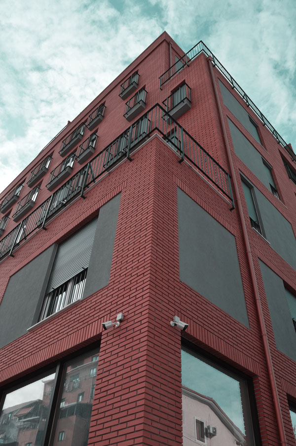 Aesthetically, the goal is to present a compositional whole, realizing a game of differentiation of different plans through the materials used. The main materials on which the facade solution is based are decorative bricks and plaster.