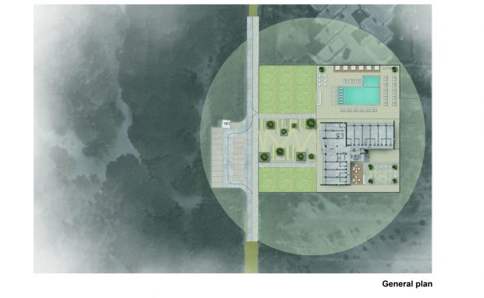 Plani i objektit u kushtëzua jo vetëm nga kolonat dhe trarët ekzistues, por edhe nga kërkesa e klientit për të patur më shumë se dyzet dhoma. Përveç përshtatjes së strukturës ekzistuese, u bë dhe një shtesë e re anësore. Godina e vjetër dhe e re funksionojnë si një e tërë, pa asnjë dallim funksional apo estetik midis tyre.